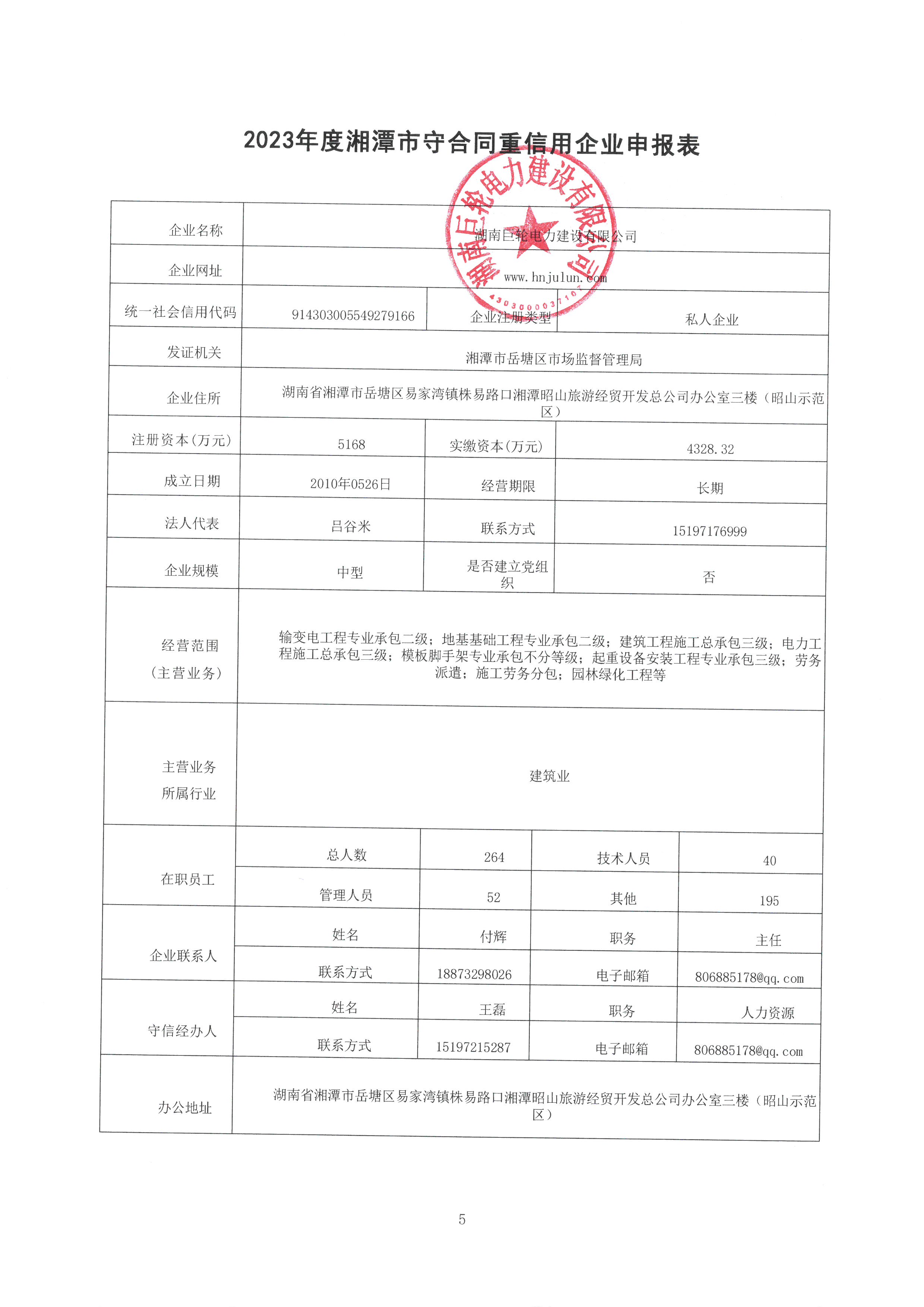 本企業(yè)根據(jù)《湘潭市守合同重信用企業(yè)申報(bào)規(guī)定》等編制 2023 年度企業(yè)信用報(bào)告書,并保證本報(bào)告書內(nèi)容真實(shí)、準(zhǔn)確、完整。