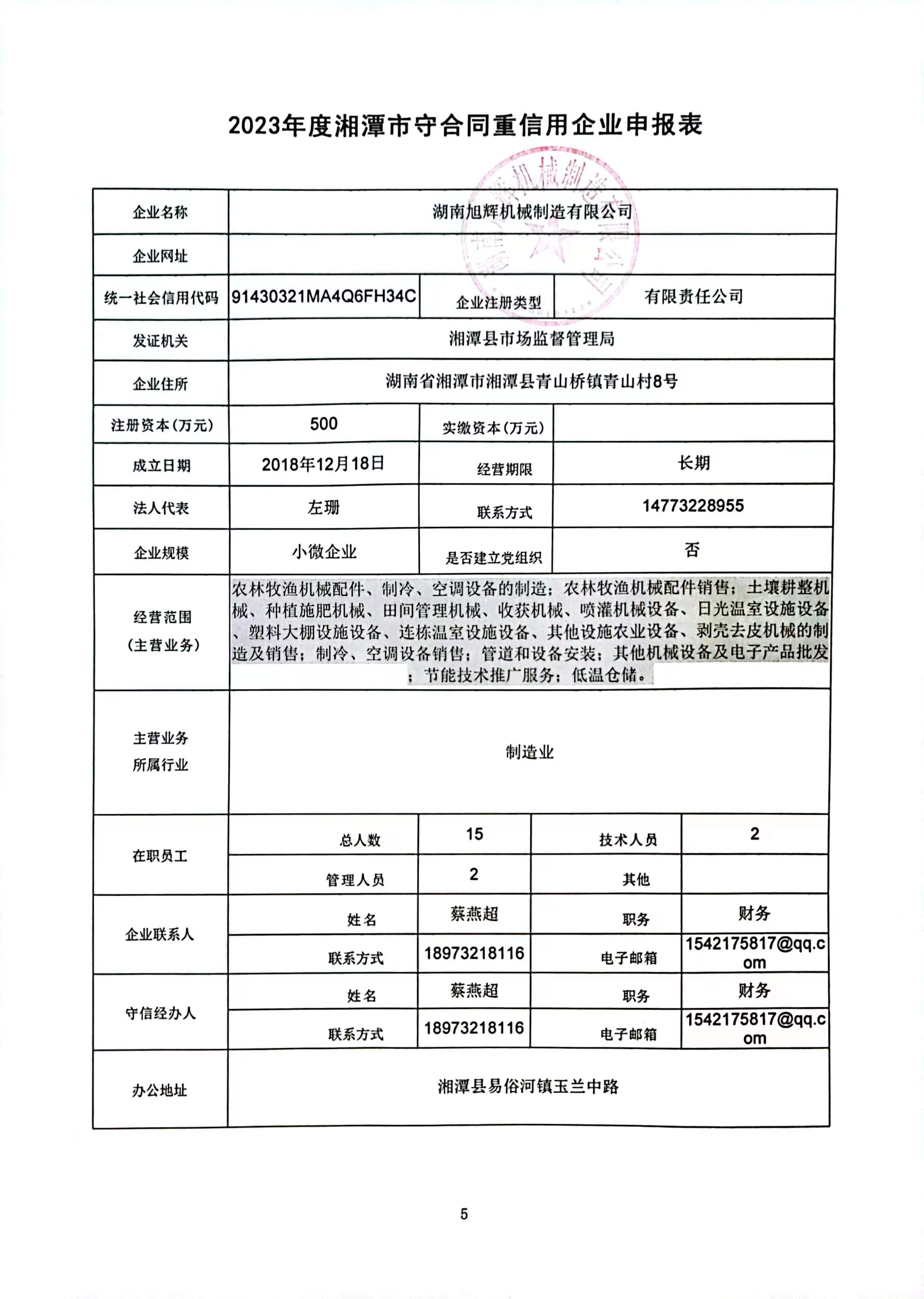 本企業(yè)根據(jù)《湘潭市守合同重信用企業(yè)申報(bào)規(guī)定》等編制 2023 年度企業(yè)信用報(bào)告書,并保證本報(bào)告書內(nèi)容真實(shí)、準(zhǔn)確、完整。